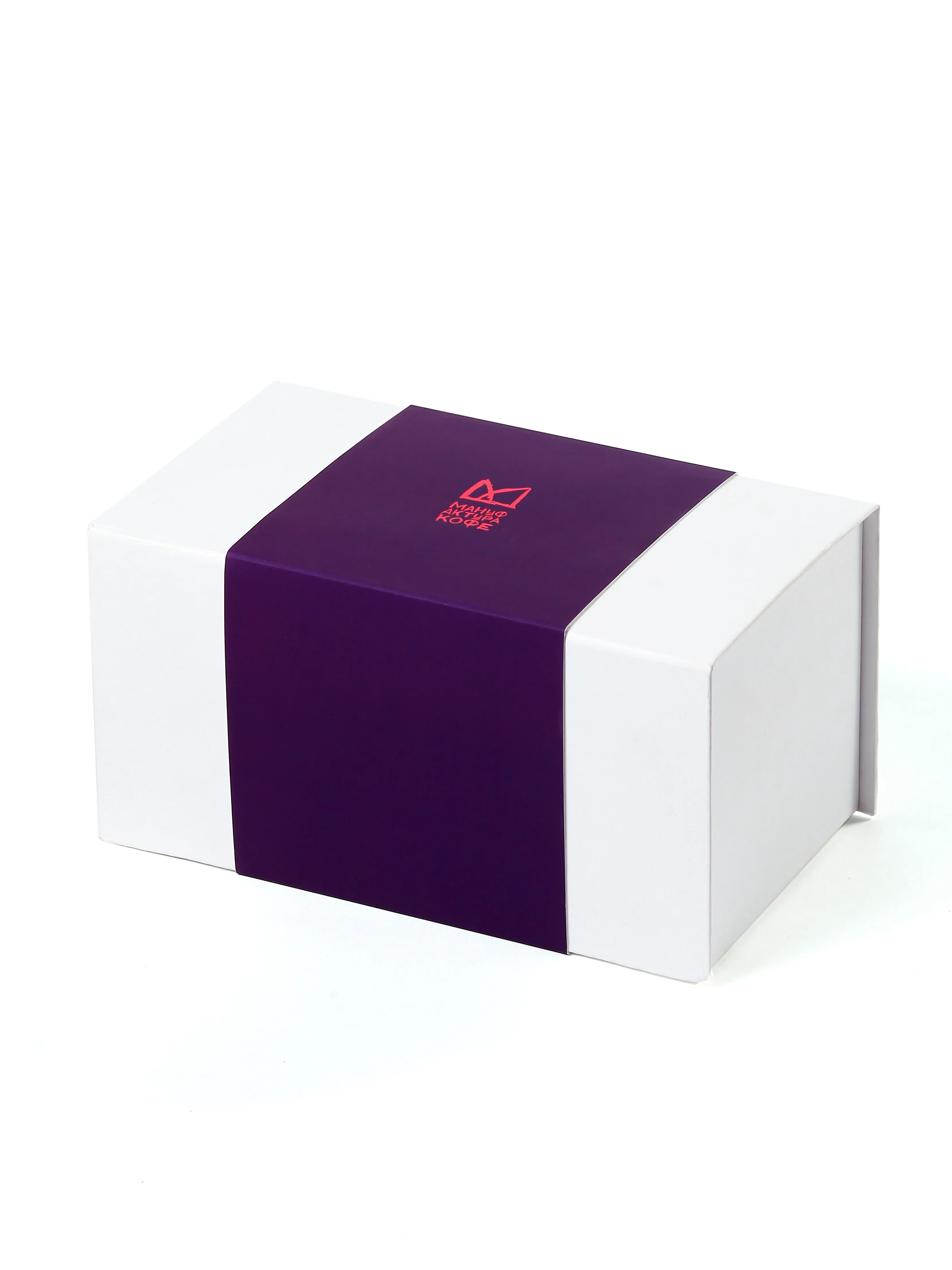 Черный матовый бокс с магнитной крышкой. Внутри чашка и 2 пачки зернового кофе — ничего лишнего